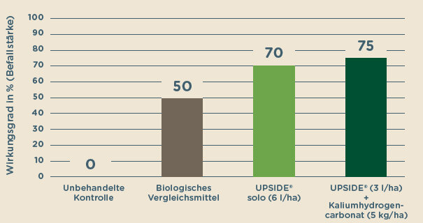 UPSIDE® bekämpft effektiv eine Vielzahl von Pilzkrankheiten, darunter Falscher Mehltau, Echter Mehltau sowie Grauschimmel (Botrytis cinerea), sowohl im Obst-, Gemüse- als auch im Weinbau.
